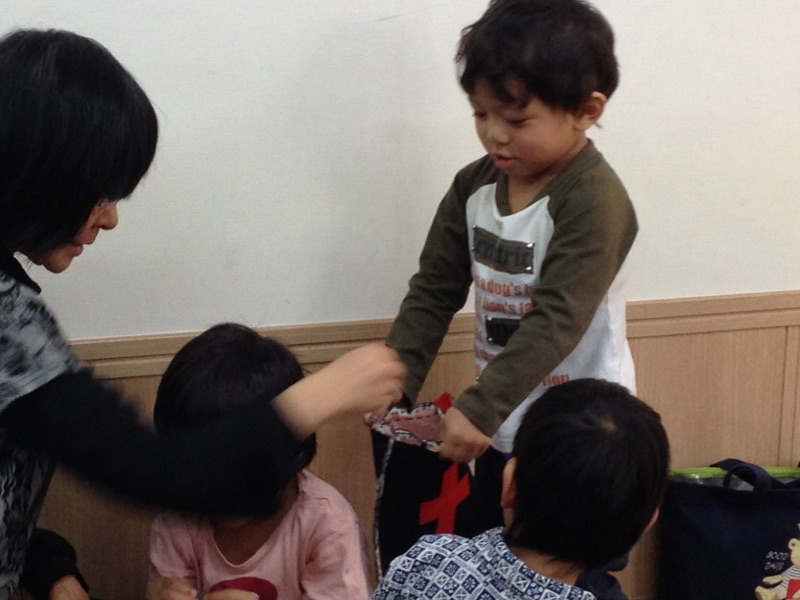 献金集めのご奉仕はよっちゃん!この奉仕、子どもたちに人気あります。