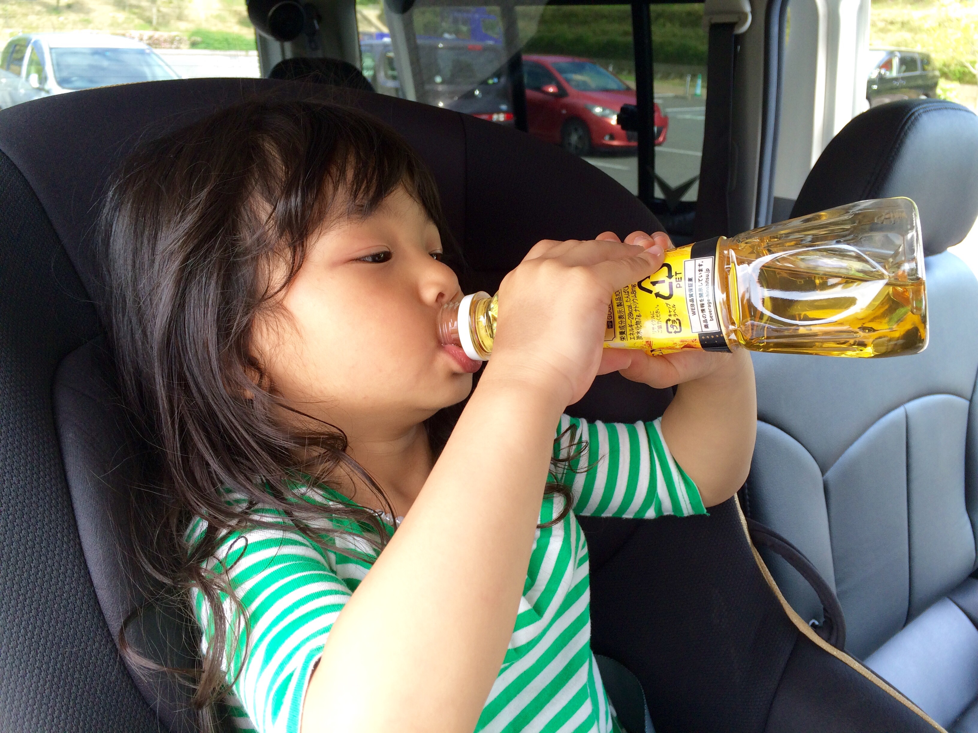 暑いので水分補給! ペットボトルが凹むほど凄い勢いで飲んでます!