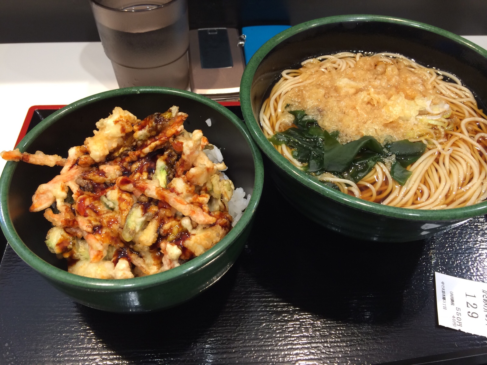 びっくり。混んでるのに、すぐ出て来ました。 私も大野さんも、イカ・アスパラかき揚げ丼セット550円(税込)です。 ミカエル