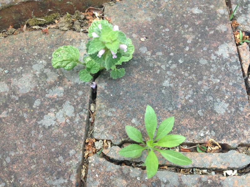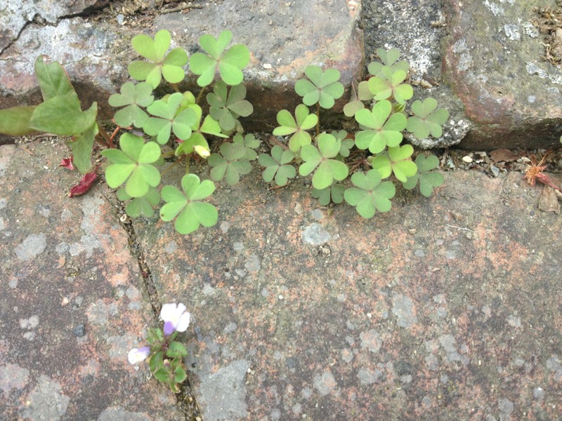 裂け目から、可愛い小さな花が… よく見たらスミレの花? amagai
