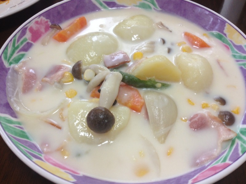 スパゲッティミートソースと、ホワイトシチューをいただきました〜! すきっ腹にしみわたります! 美味しかった〜amagai