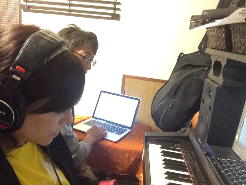 「風のひびき」のピアノ録音してたのですが…脇で、監督に見られてると緊張して弾けなくなり…(o^^o)出てってもらいました。 ハルミ