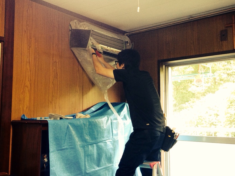 祖父の家に着きました!クーラーのクリーニング初めて立ち会ってます。超効率的で素晴らしい手際です(笑)Noah輝美