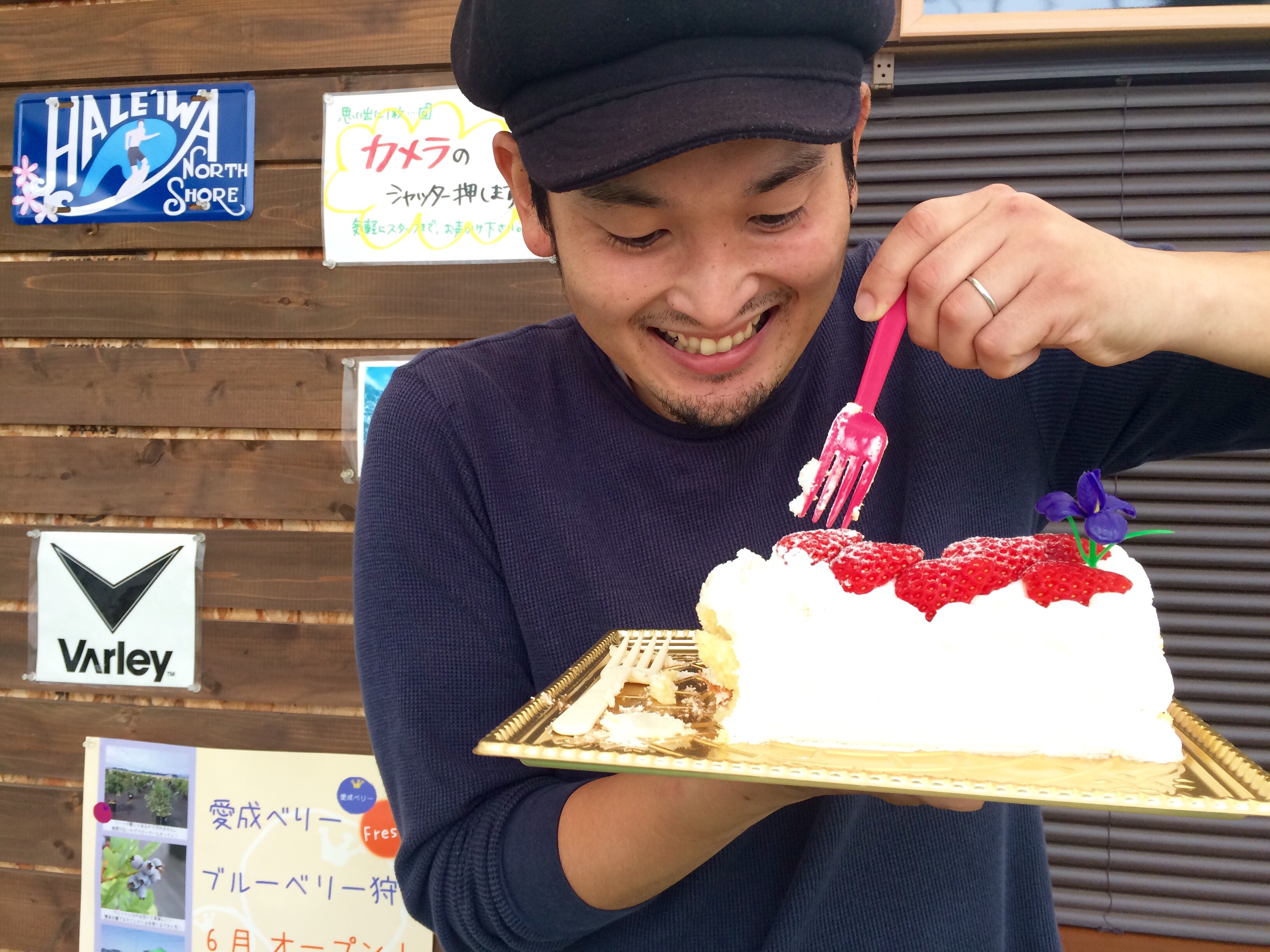 やっと連休が終わり、ほっとしてます(笑) 疲れているのでケーキを頬張るケイスケ♪