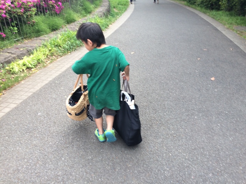 僕が持つと張り切っていますが、ちょっとひきづってますね。 ヨセフ