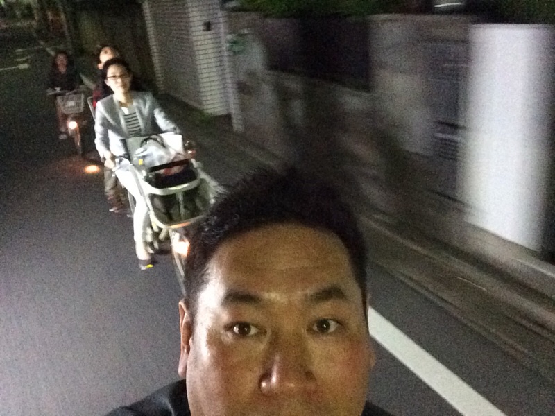 こないだ、自転車での夜の帰り道の写真。 なんだかチャリンコの走り屋な感じですかね^o^ みんな一列に並んで付いて来ている感じです。