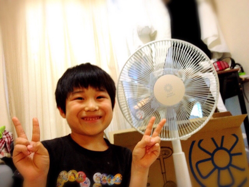 新しい扇風機、僕が組み立てたよー まじダビ