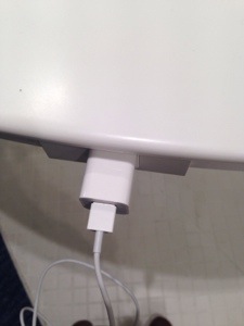 さっきまでパソコンデスクで充電していたのですが、人が来たので移動。 どこかにコンセント無いかなぁと思っていたらテーブルにコンセント!! いろんなところにありますねぇ。 熊本アンテオケ教会