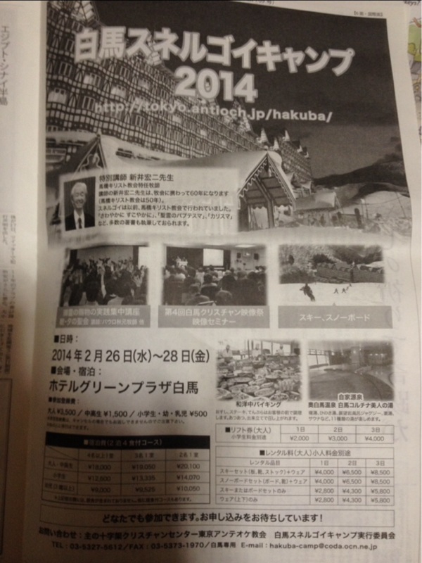 23日発行のみ声新聞でも、白馬キャンプを大大的に宣伝しています。 聖会部門