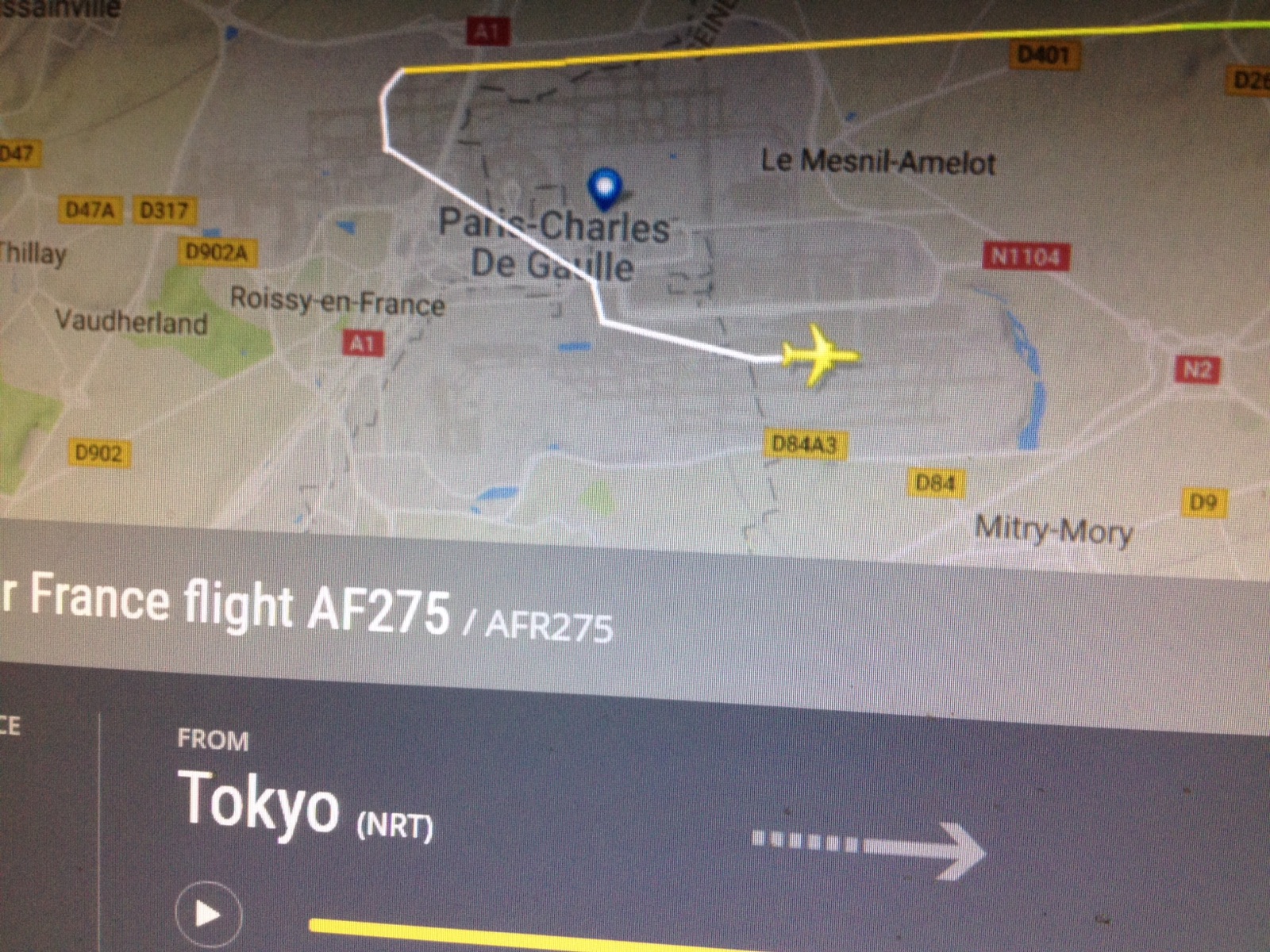 エールフランス組、ほぼ定刻通りパリに到着しています。