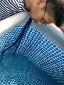 プールの水入れてます!