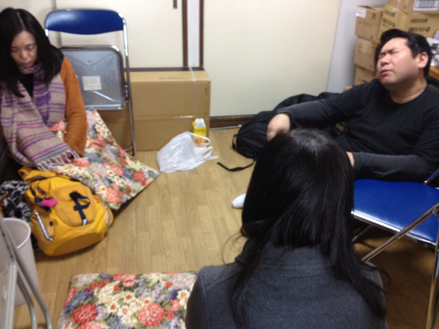 毎週火曜日の午後は白馬スネルゴイキャンプのための祈り会です。委員長の好みでお座布団出して座って祈ってます。