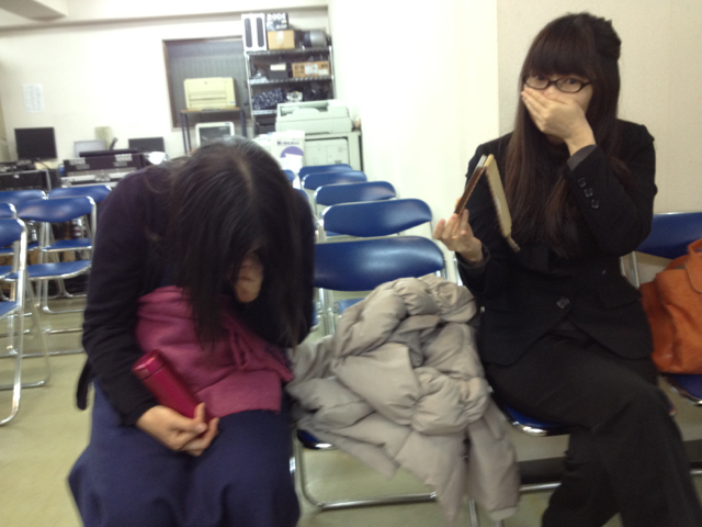 神学校の授業収録に引き続き、風のひびき・まどかとまさこのホットなひとときの収録が始まります。