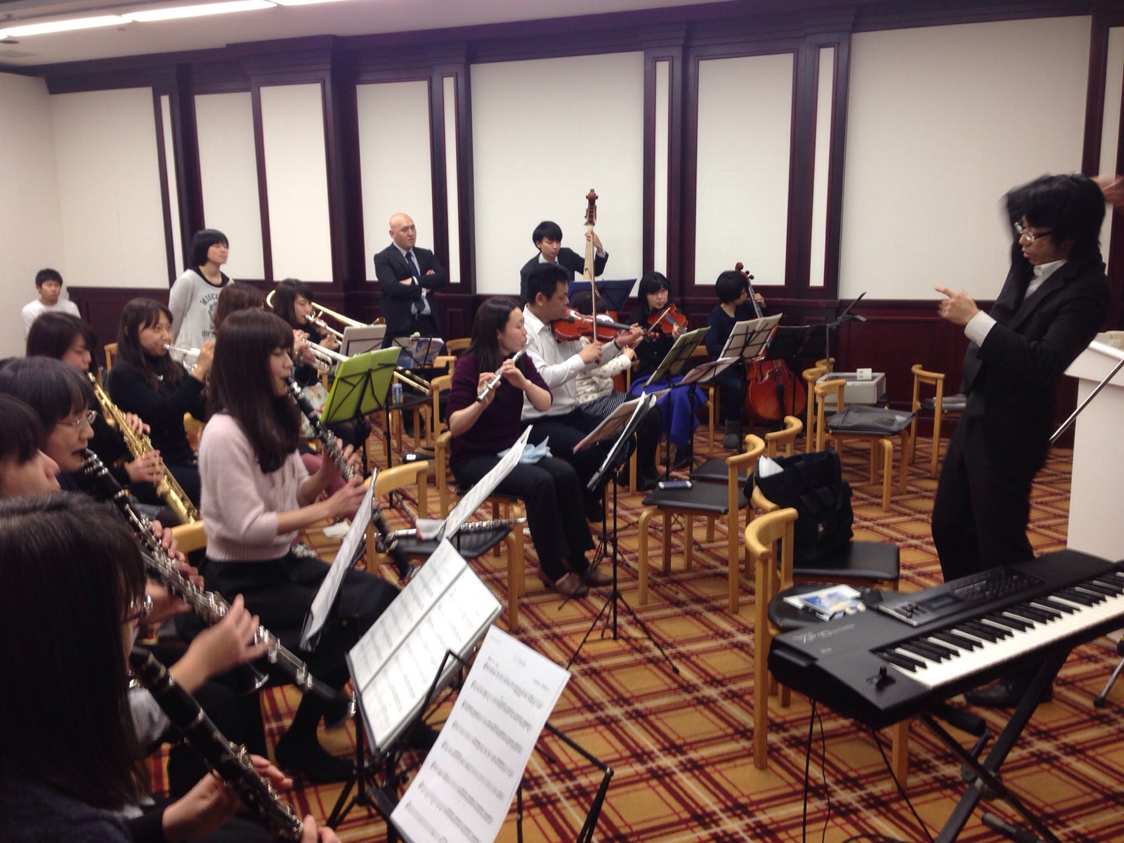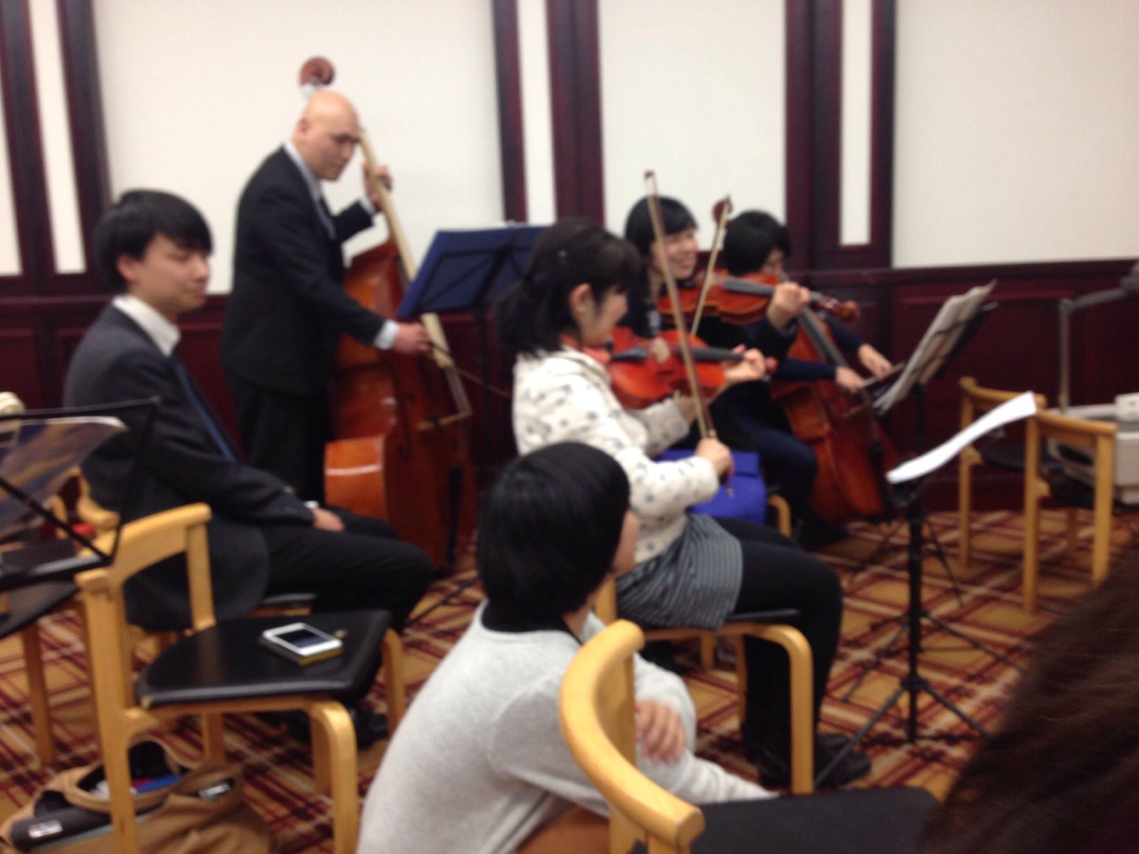 オーケストラ体験談、講義のお話の後、実際に地方教会の楽器持参の方々と練習を♫