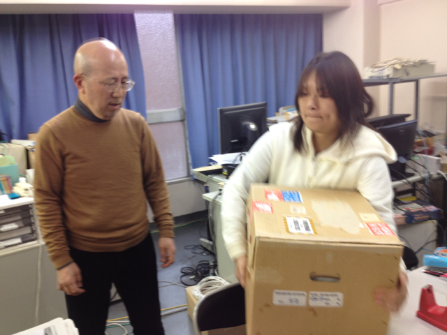鈴木さんと土屋さん、白馬スネルゴイキャンプで販売する出版物を準備し、パッキングしました。