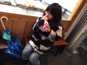 散々歩き回りやっとお目当ての手袋発見!! 娘は疲れ切っています^^;
