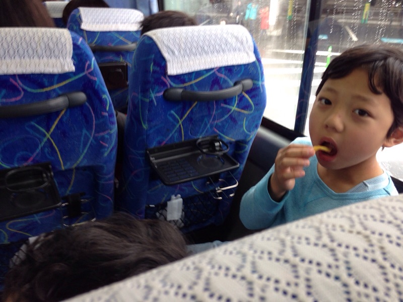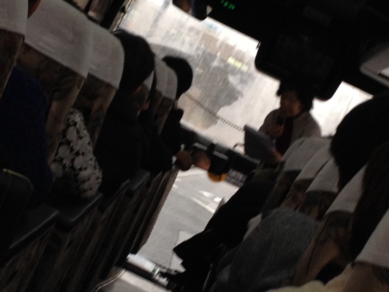 一回目の休憩、外は雨です。 二号車バス