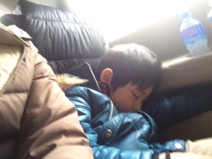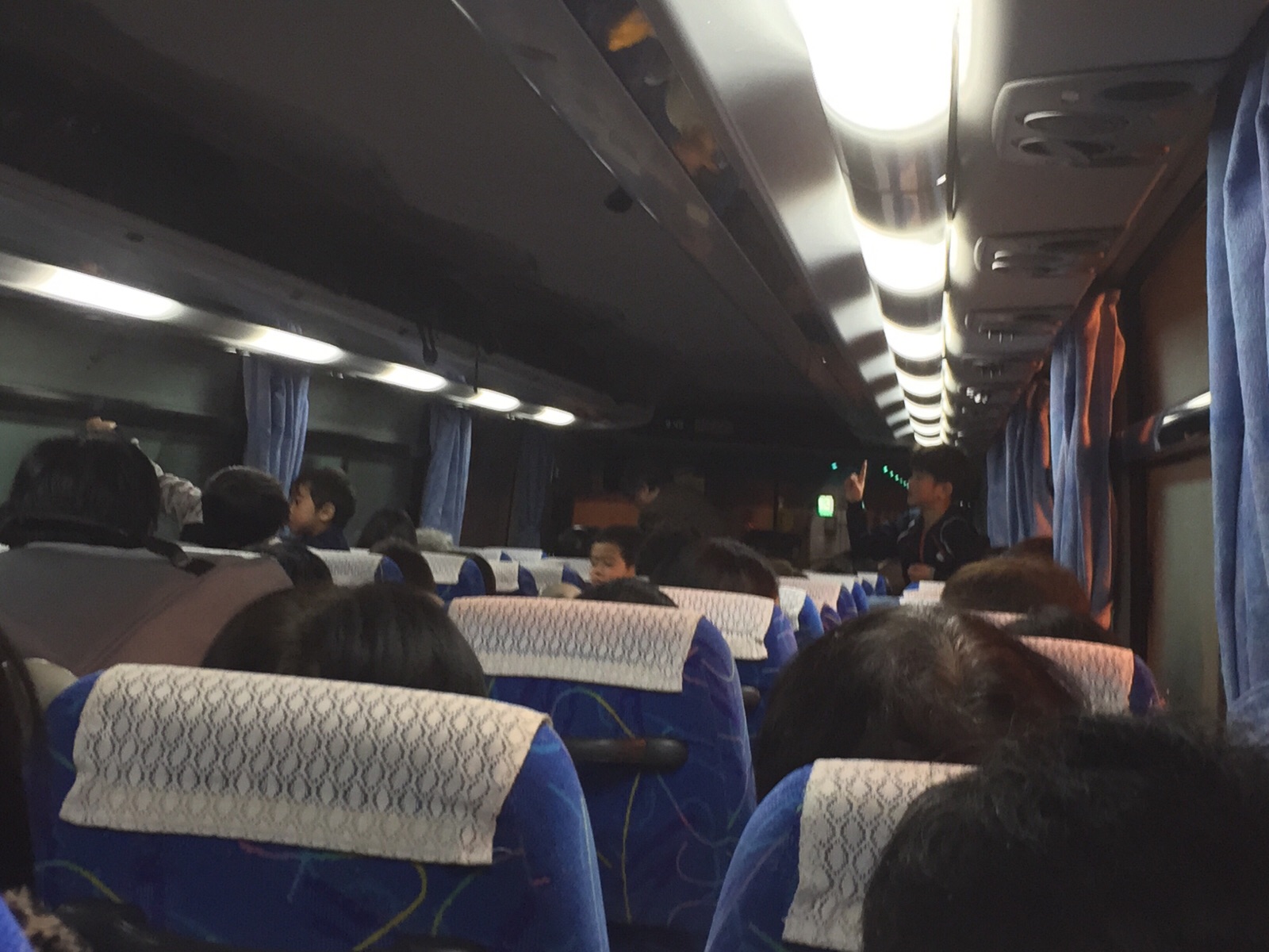 バス内で子どもたちは遊んでいます。