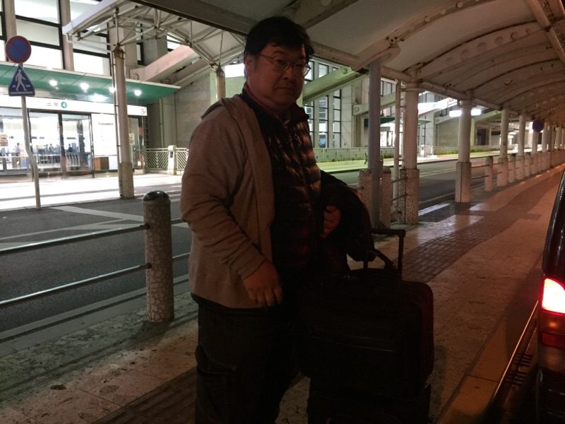 早々と那覇空港入りの永藤さんです。東京へ出発! 沖縄エルサレム D