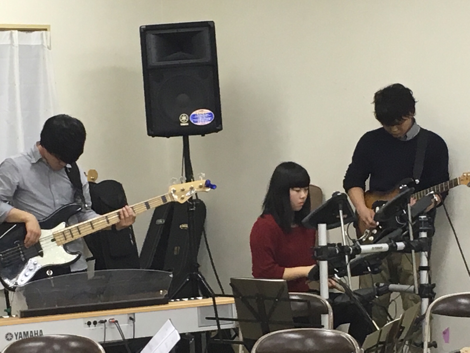 ギター&ドラムの練習中のペンビさん&イザヤ君♪(v^_^)v 神のしもべ長崎教会 望