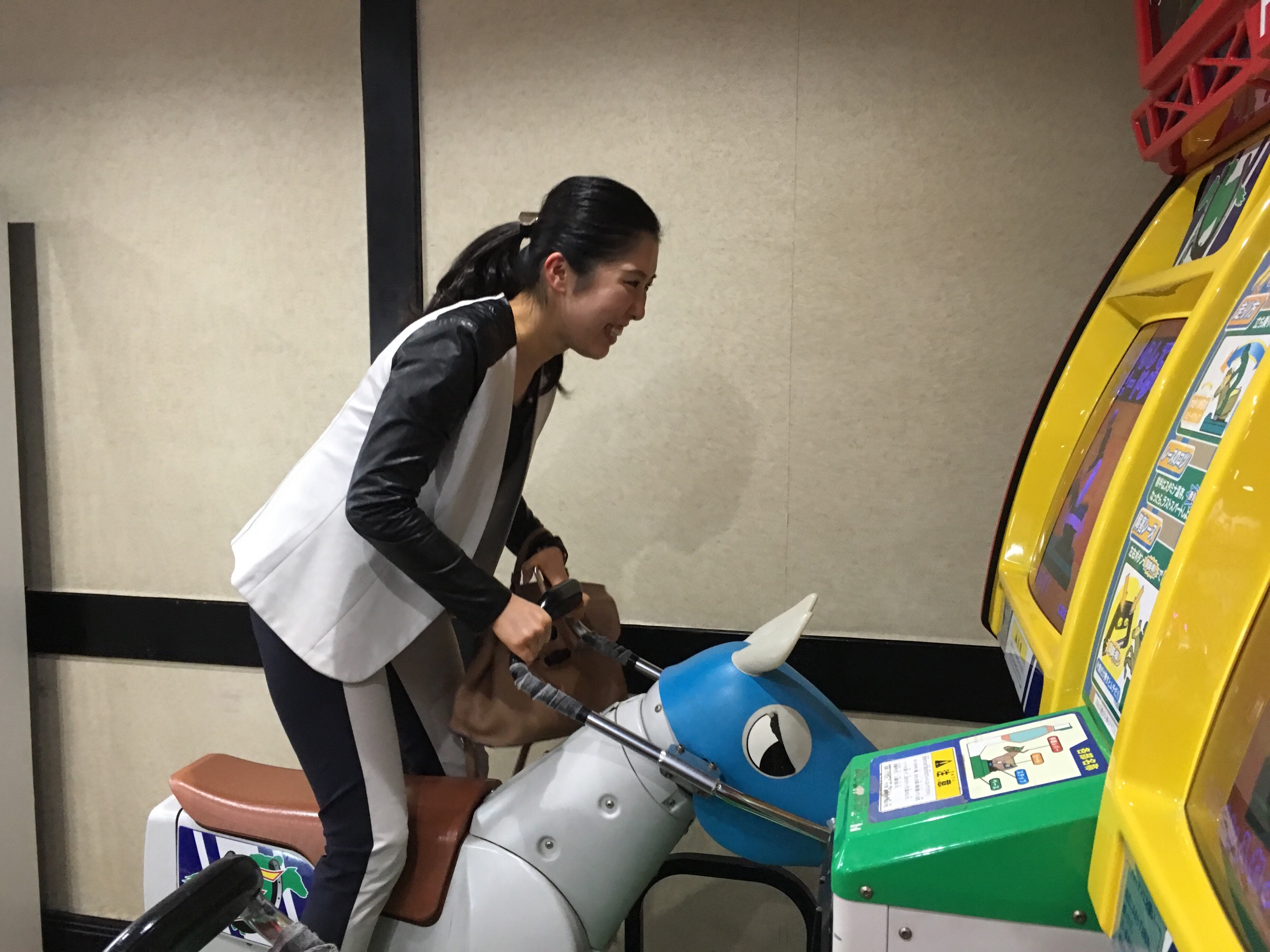 エリちゃんは、白馬で白馬に乗っています(^。^) ゲームセンターにて….(^。^) 四日市 Chikumi