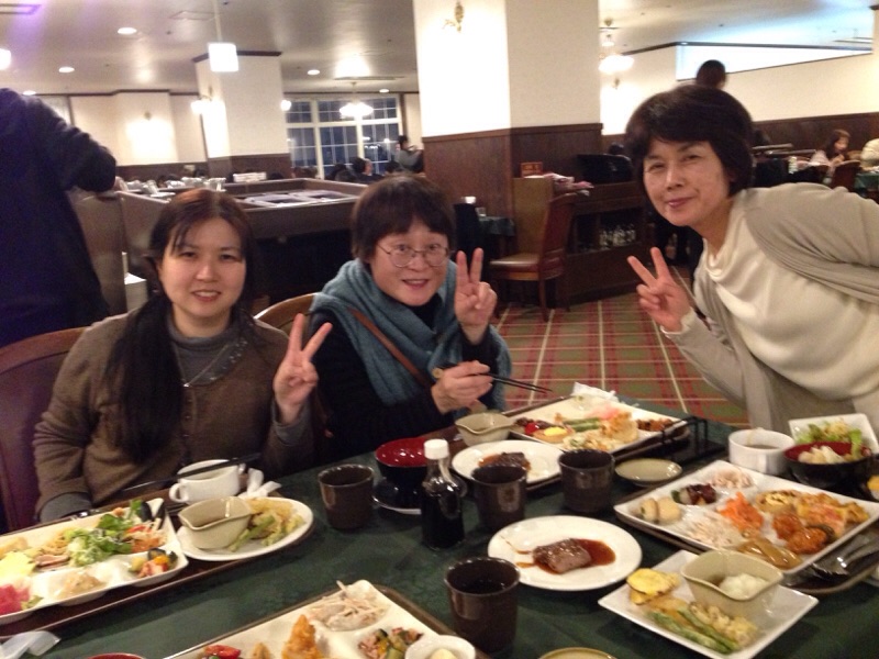 お楽しみの夕飯! みんな、たっくさん盛ってます! 大阪エステル