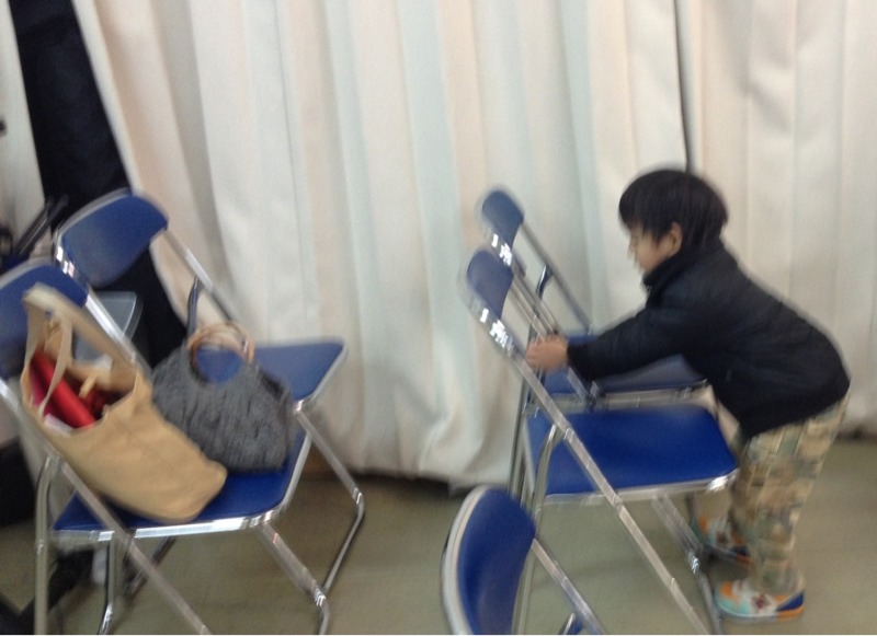 ヨッシー君 今度は…椅子を並べて…います! 性格がでますね〜。几帳面です!