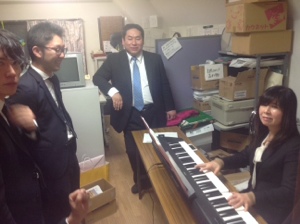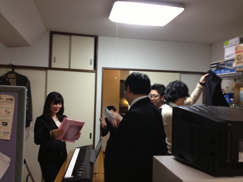今日のおおとりのキブツ、教会事務所で練習中でした! 新しい歌を歌うみたいですよー!