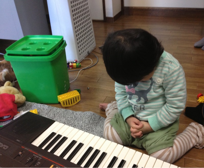 賛美が終って…るんちゃんを見たら…お祈りの姿勢をとっていました! 「あずさリバイバル100周年記念のDVD」に映っているお父さんのよう…?! (ブログスタッフ)