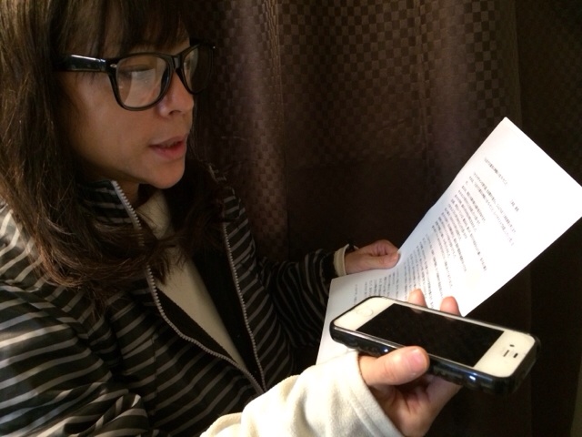 インターネットラジオのパーソナリティでデビューしたエステルさん。音声チェック中。