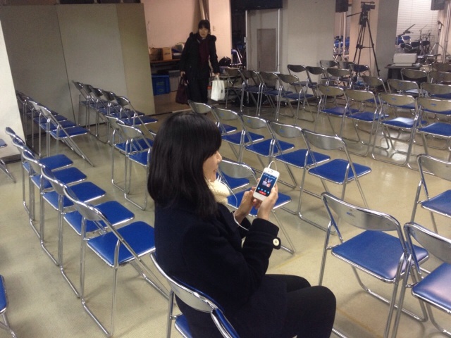 後ろでは愛ちゃん、エステルさんがインターネットラジオの準備でした! 夜の会堂