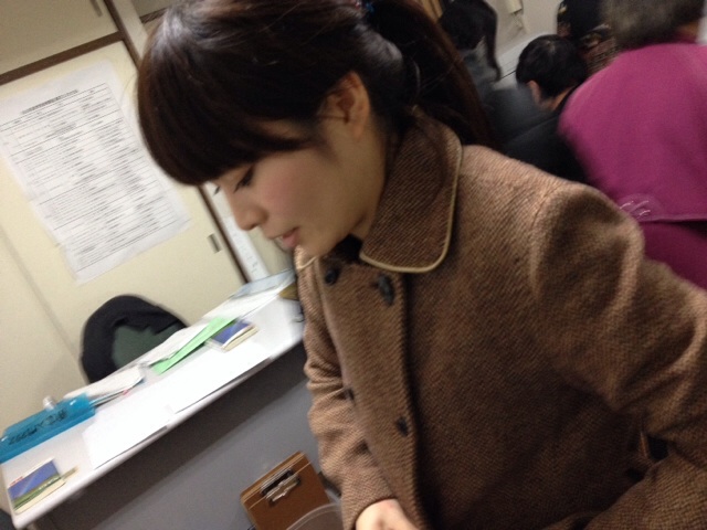 年末コンサートの準備です。プランナーの唯ちゃん。 〜会堂です〜