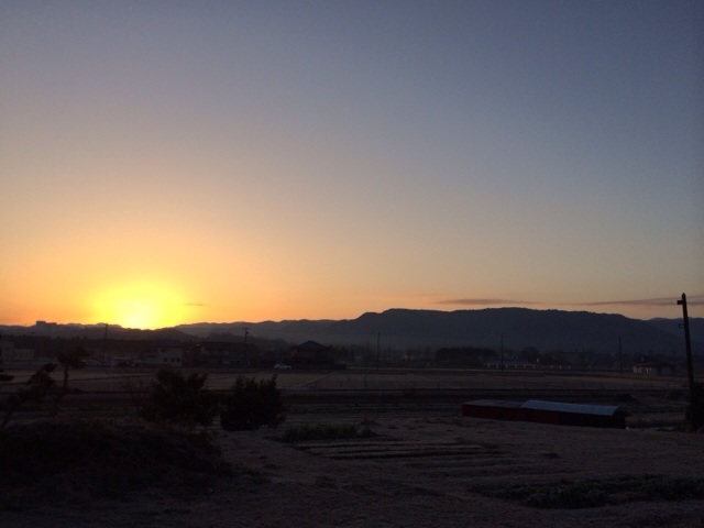 早天が終わり、外に出ると霜で真っ白でした。 実家の前は田んぼが広がって何もない田舎です。 ふじい@三重