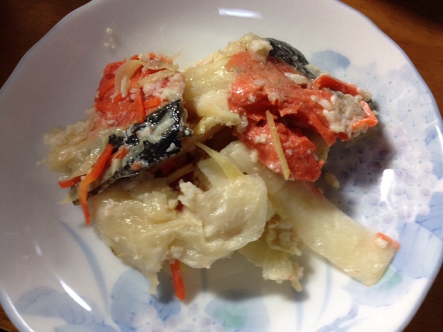 実家から送られてきた中でも、北海道のお正月らしいのがこれ。 鮭の飯寿司です。 寿司と言っても、ご飯はありません。 鮭を米麹で漬けて、発酵させたもの。 ふるさとの味です。 JOY.Miya 自宅にて