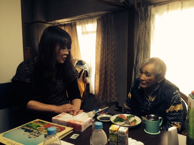 アルバムを見ながら話が弾んでいます。大阪、窪田みどりの夫