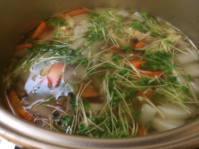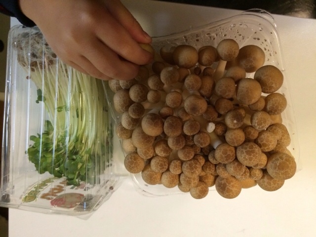 原宿のチャリティライブから帰宅。 すごくお雑煮食べたくなり、スーパーへ。 セリと椎茸、目ん玉飛び出るほど高くて(°_°) 。。。代わりにカイワレとシメジにしました! ¥850うきました(≧∇≦)ヤッホー