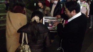 ヨシュア君もチラシ配りがんばります! 原宿にて