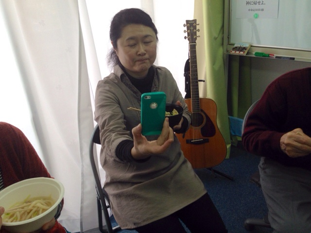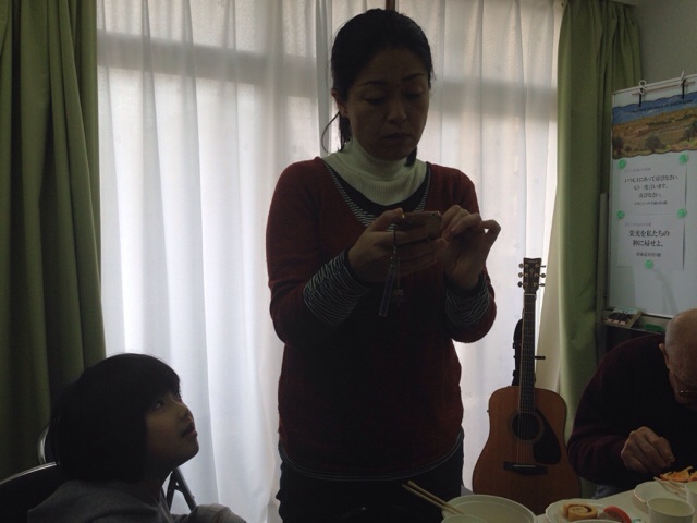 母子室担当の裕美さん! 今、電話でお母さんにiPhoneのことで、レクチャーしている話しを してくれました! 今回は福島に帰らないのかな? 特別礼拝 東京アンテオケ 母子室