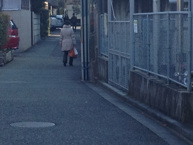 教会に向かう道、前を歩くのはナオミ牧師です。