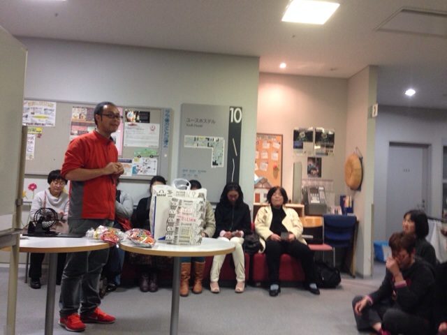 ユースホステルのビンゴゲームが始まりました。 タクヤ @新大阪 ユースホステル