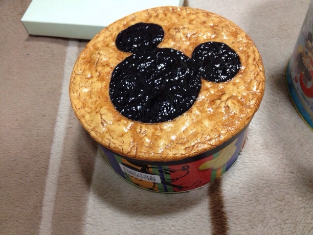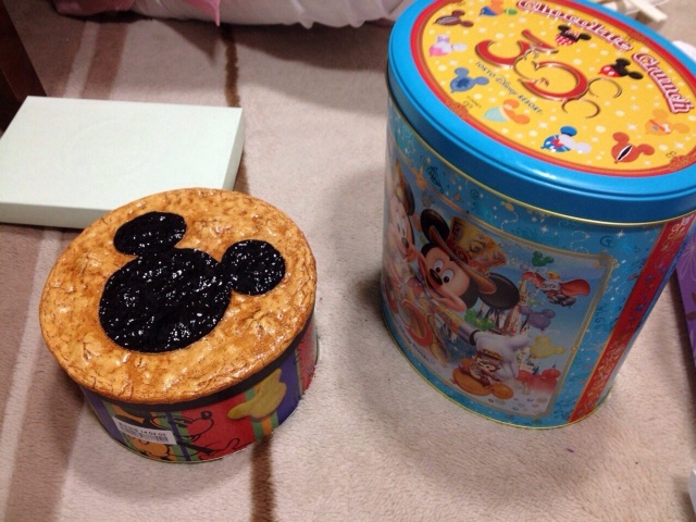 スタッフの女の子が、お正月休みにディズニーランドに行ったお土産のおせんべいをくれました。おせんべいの入っている缶の蓋もおせんべい!さて、食べれるのかな?