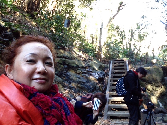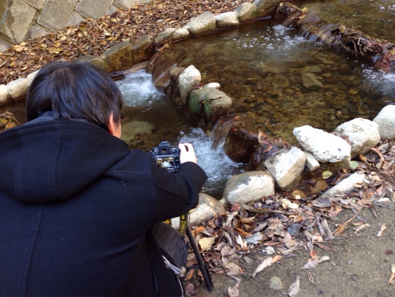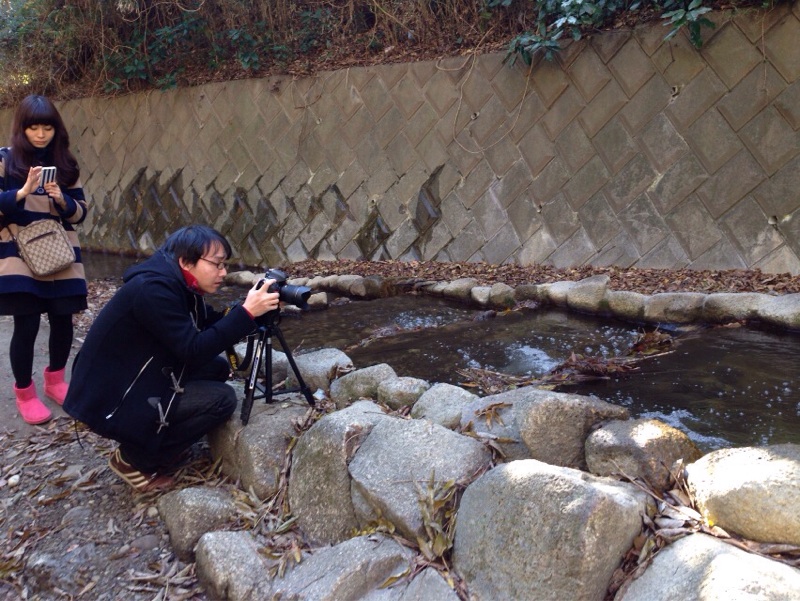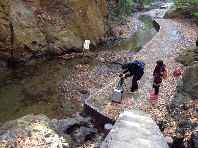 山登りの家族も通ります。 どこで、撮影しましょうか…? エルサレム 前田川にて