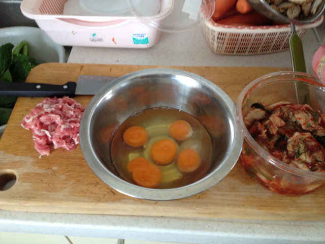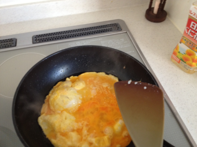 昼食にリクエストがあり、キムチ炒飯作りました。