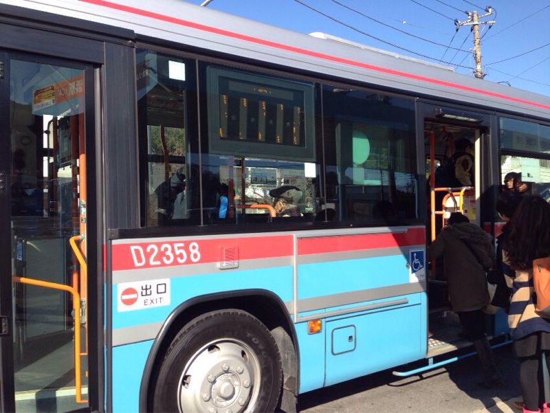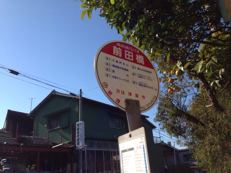 前田橋まで乗ります。 エルサレム 新逗子のバス停にて