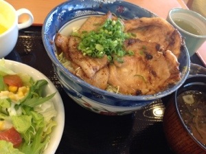 帰省のため移動中。少し早めのランチタイム。上里名物豚丼。いただきます!