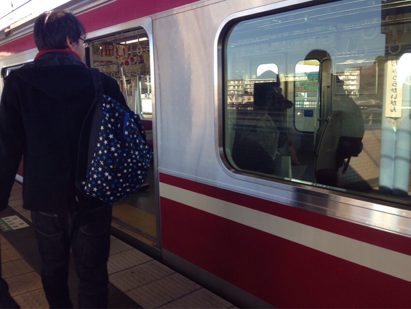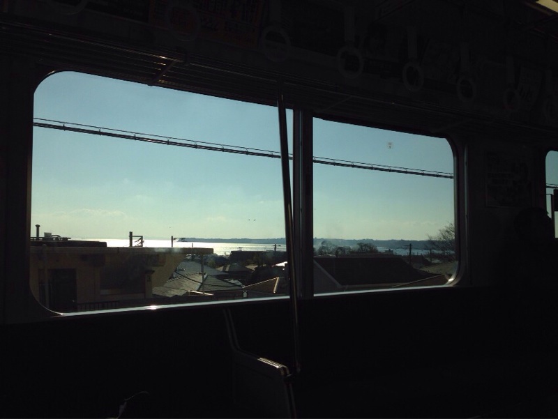 乗ります。 エルサレム 三浦海岸駅から新逗子駅までの電車内にて