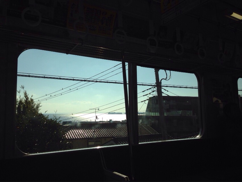 海が不思議な色に見えますね…。 エルサレム 京急の電車内にて。