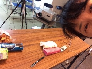 先程の休憩で、美味しいおにぎり、卵焼き、煮物、果物などが出ました!