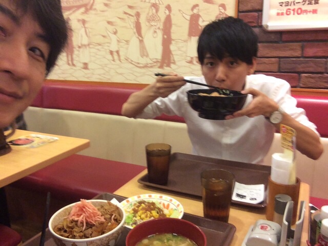 今日は、ヨッシーが風邪、拓也君も体調不良でお休みのため、二人で路上ライブです。 珍しく、すき家でお昼。 ヨセフ