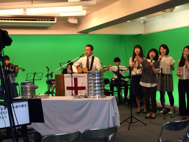 賛美の時です。 東京アンテオケ教会の牧師、秋元さんが導かれます。